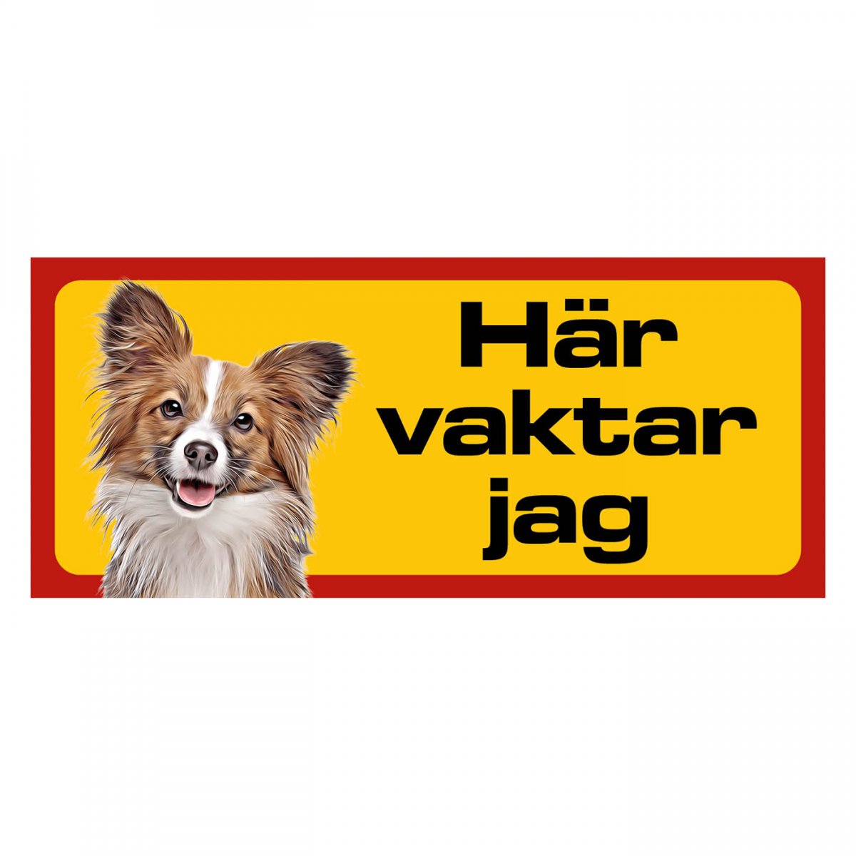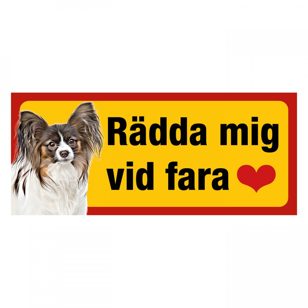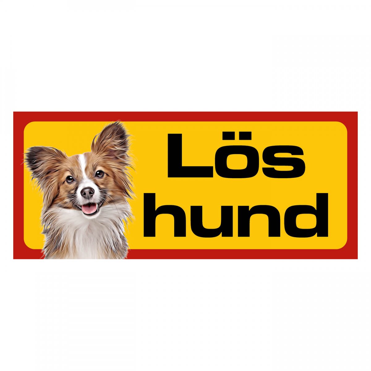Papillon gul/röda hundskyltar - liggande
