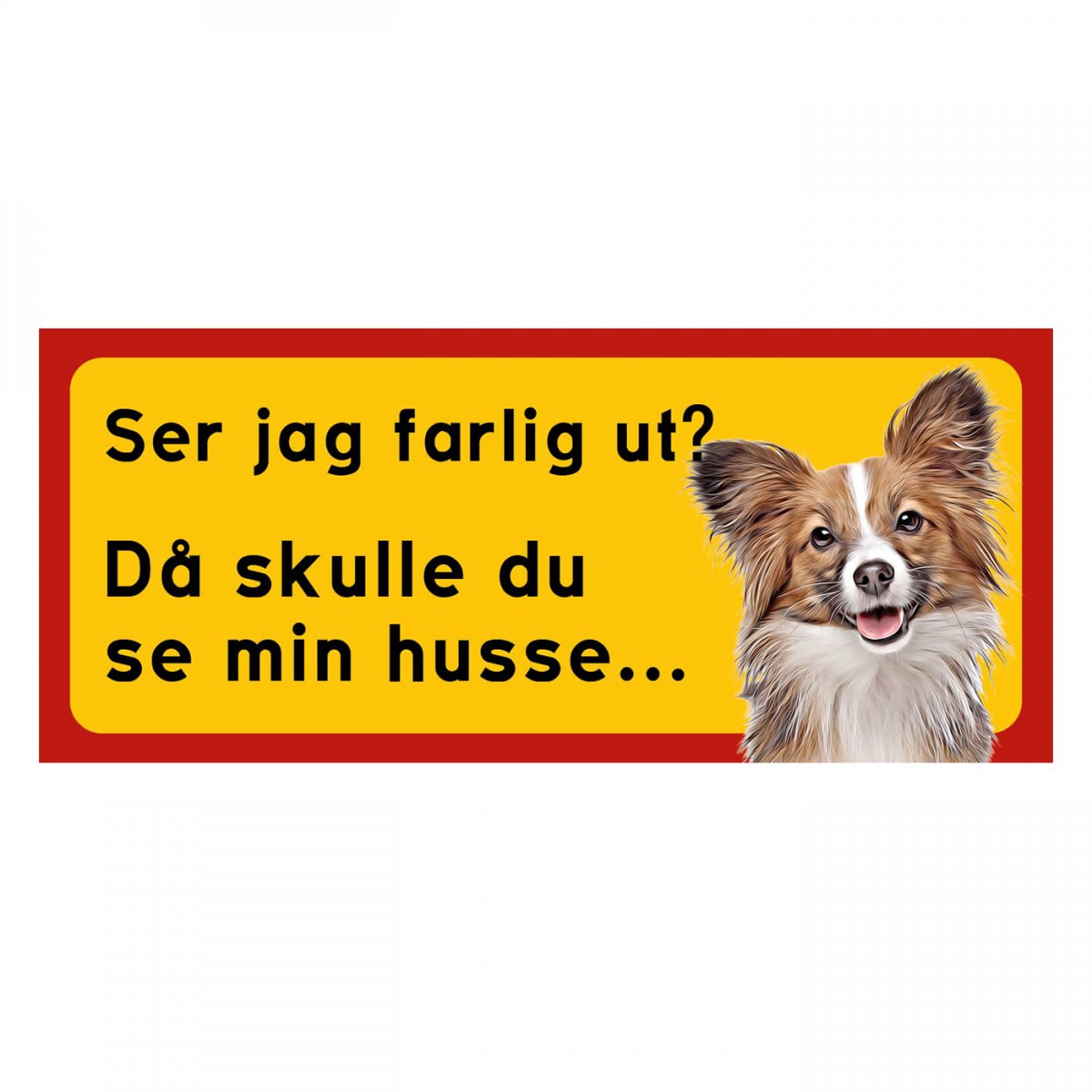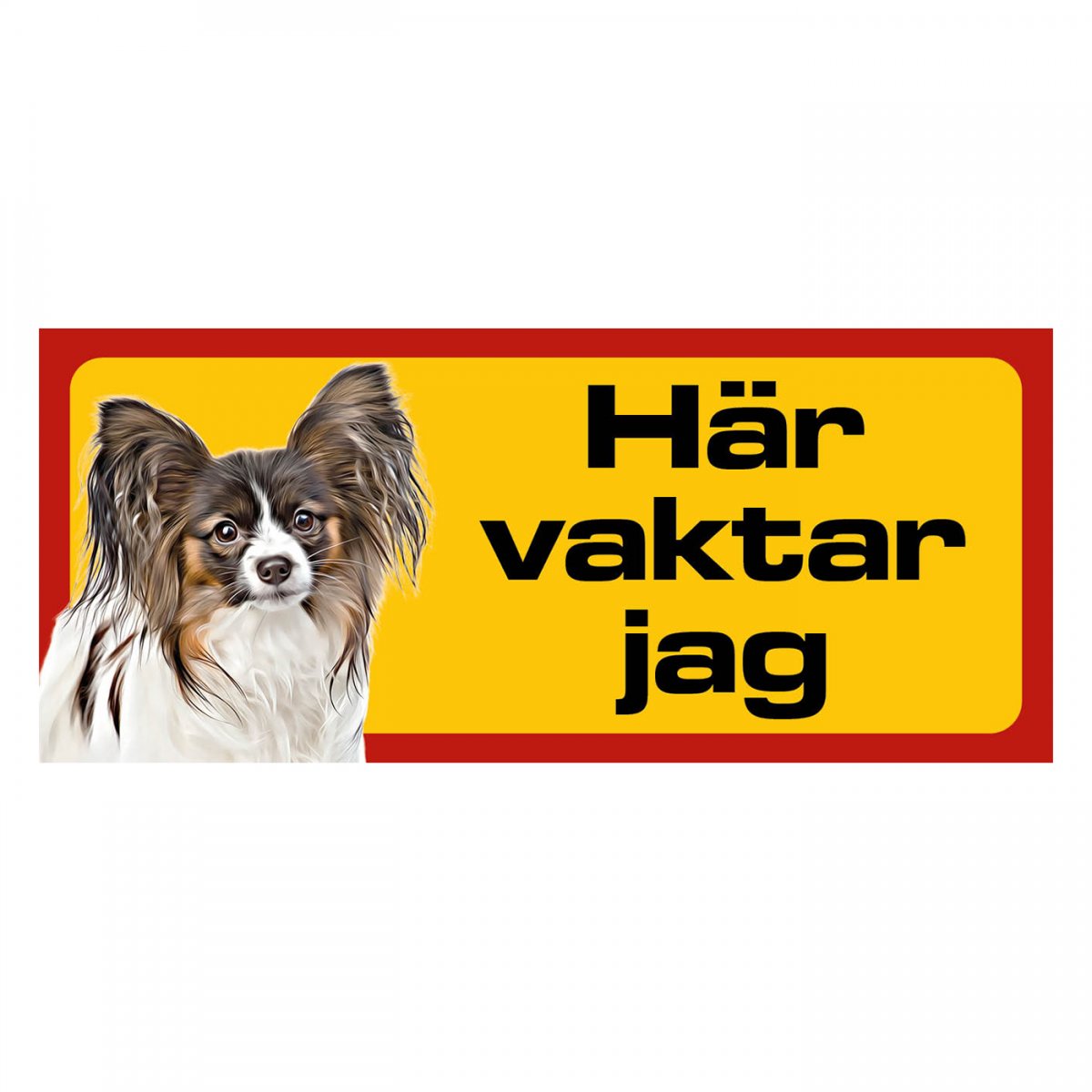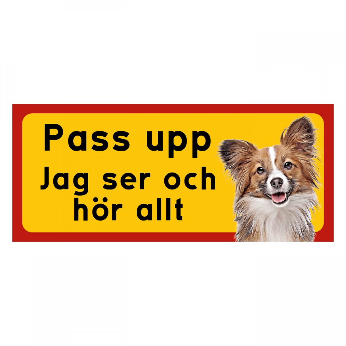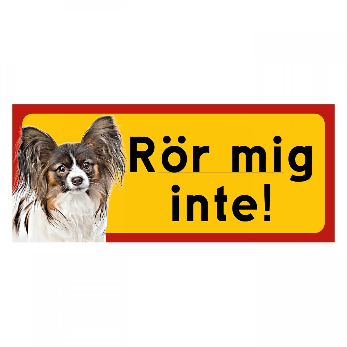 Papillon gul/röda hundskyltar - liggande