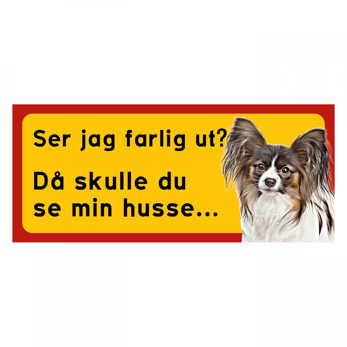 Röd/gula hunskyltar Papillon